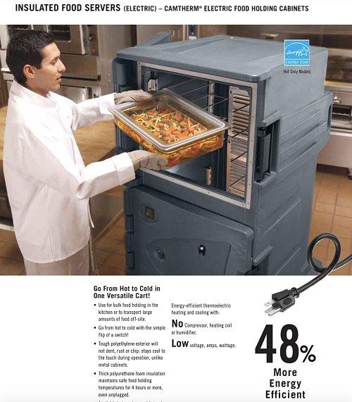Cambro is a 69-year old company with a vision to make a hospital meal tray of the highest quality possible. catalog caters to its business in the insulated transport, merchandising, ware-washing, and other categories. Each product captures details around the build, weight, dimensions, price, optional accessories, voltage, energy efficiency, etc.