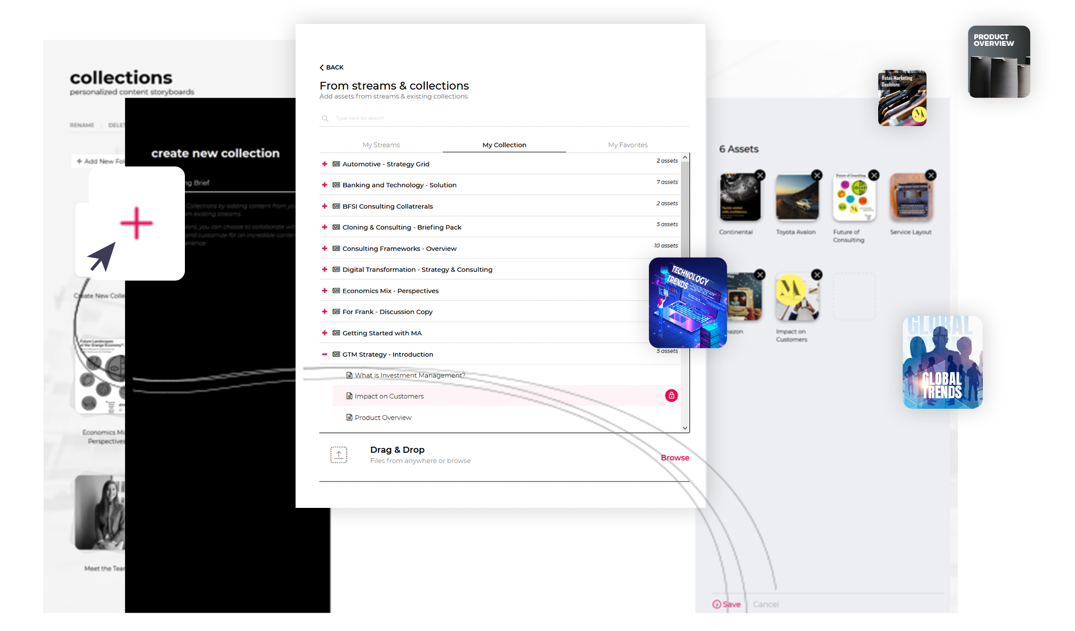 In easy steps simply drag-drop your content pieces from the library, choose from a wide variety of captivating imagery, add your custom messaging and your microsite is ready to be shipped right from the comfort of where your sellers work- Emails, CRM’s.